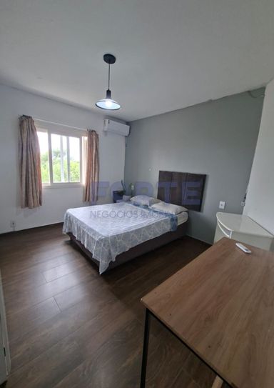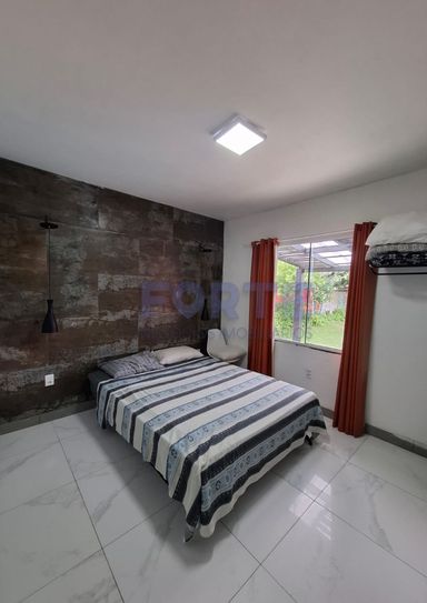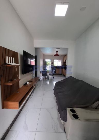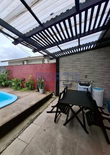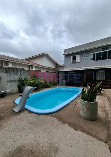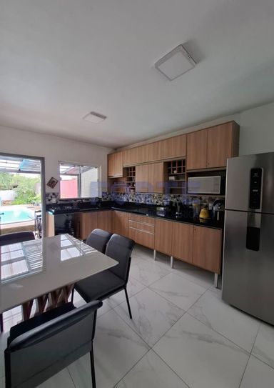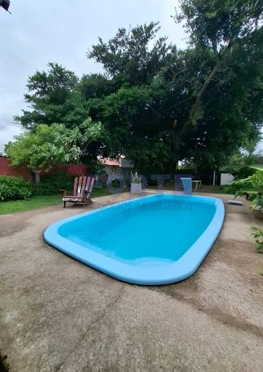 Pavimento térreo: sala de estar, cozinha, 2 dormitórios, banheiro, piscina, churrasqueira, garagem e pátio amplo.