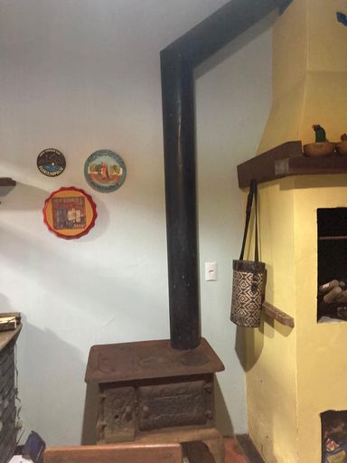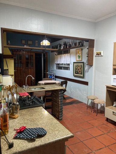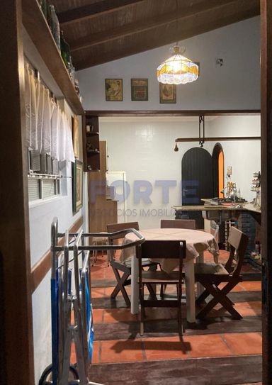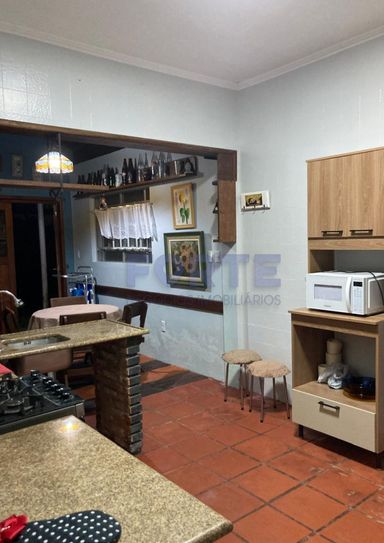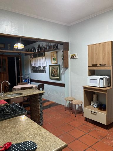 O imóvel conta com: 2 dormitórios (sendo um suíte com lareira), 2 banheiros, cozinha com fogão a lenha e churrasqueira e sala de jantar conjugadas. Área externa com coberta na frente para 2 carros, lavanderia.